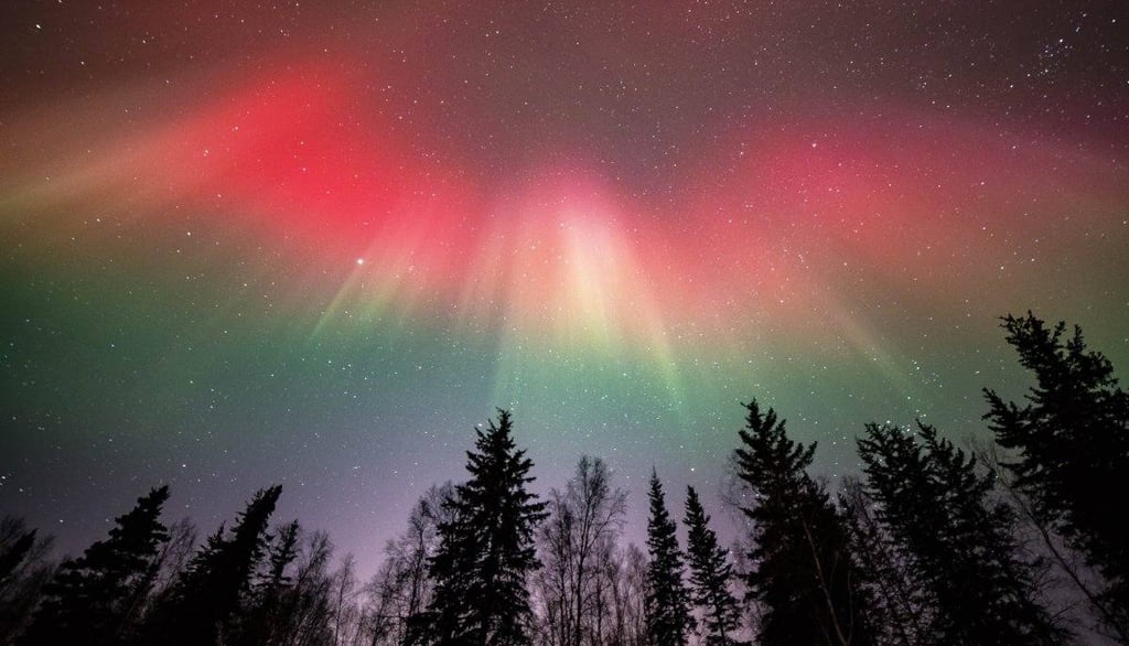 At higher altitudes, above ~250 km, oxygen atoms emit red light near 630.0 nm. The thin atmosphere at these heights allows excited oxygen to release energy slowly, producing long-lasting crimson glows. Red aurora often appears during strong geomagnetic activity, when solar wind energy penetrates deeper into the magnetosphere-ionosphere system.